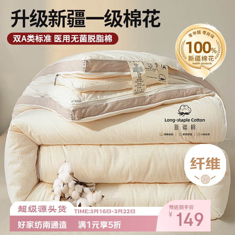 VJE新疆棉花被子母被二合一单人全棉纯棉春秋被芯冬被棉被褥加厚棉絮 新疆棉-米白【100%新疆一级长绒棉花填充 抗菌率99%】 150*200cm拉链款【子被3斤+母被6斤 】二合一设计