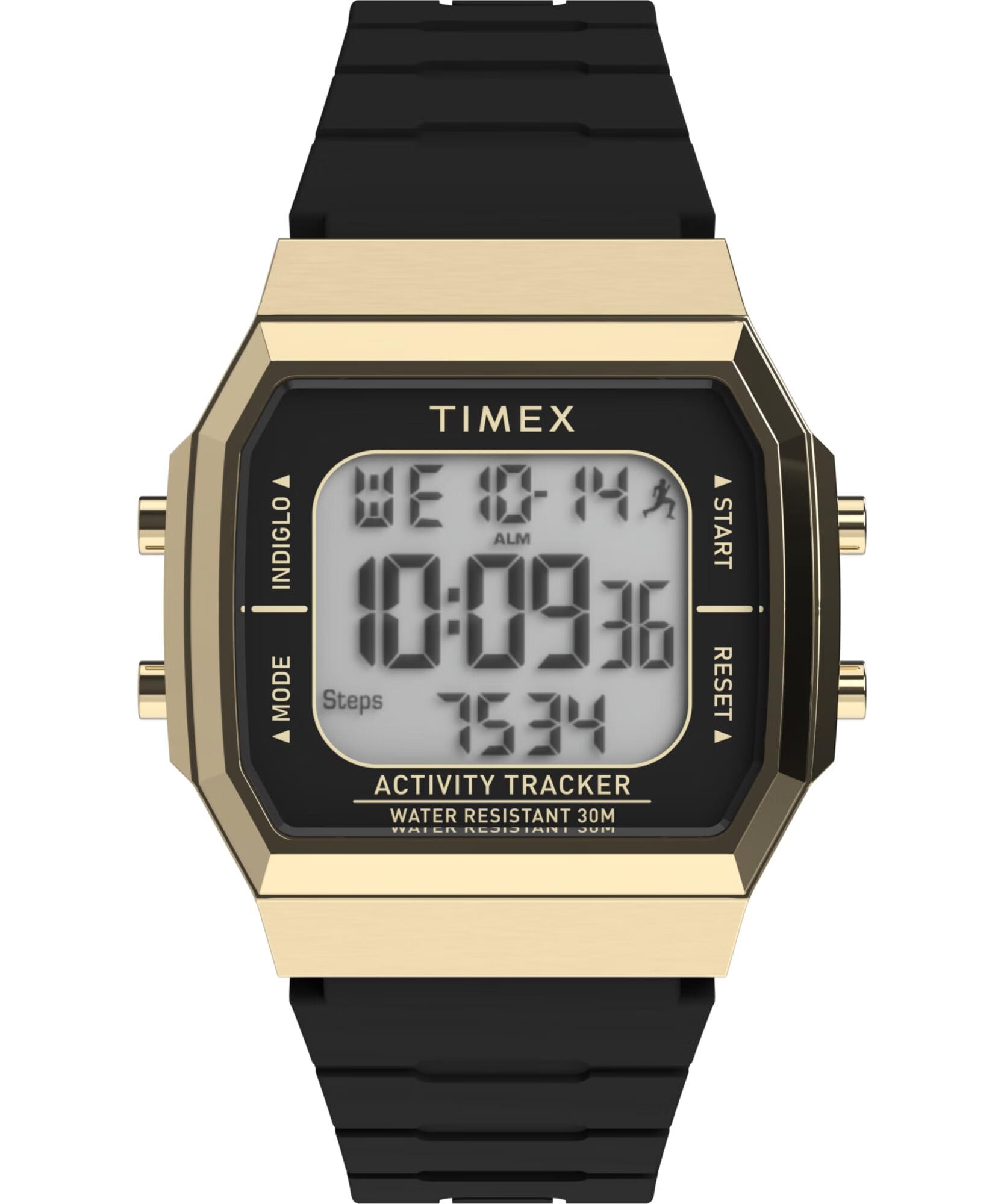 TIMEX 男士数字电子手表 40毫米硅胶表带 运动活动追踪 绿色/数字/金色