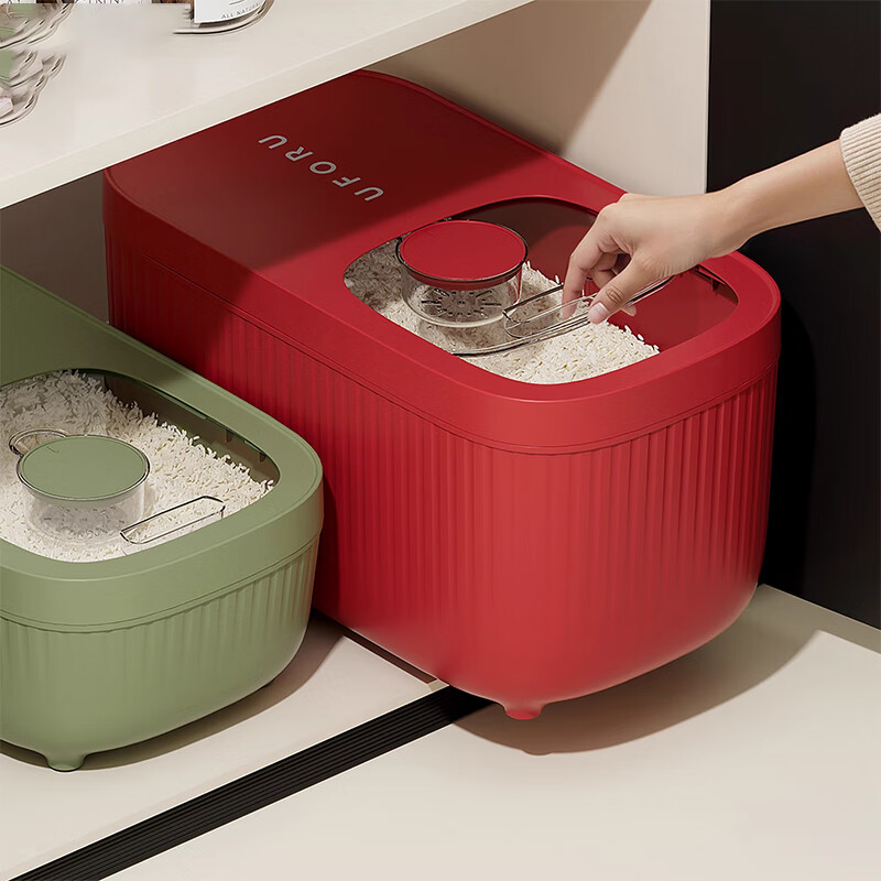 木格格米桶家用2025新款防虫防潮密封装米缸大米储存容器食品级面粉罐 安可拉红加厚款-10斤【滑动开盖不顶柜】