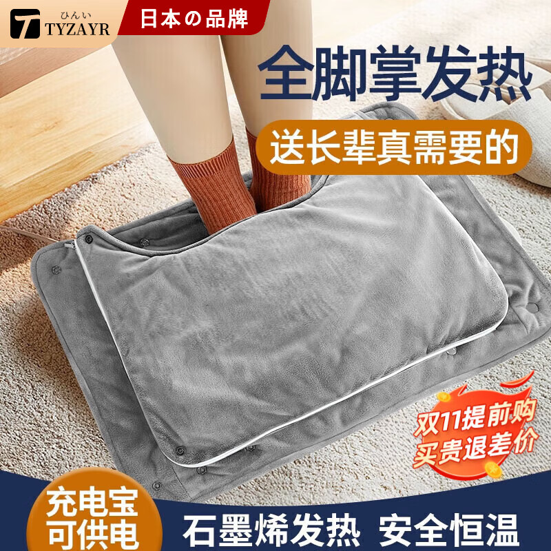TYZAYR日本厨房小工具 灰色-石墨烯USB暖脚宝-3档调节