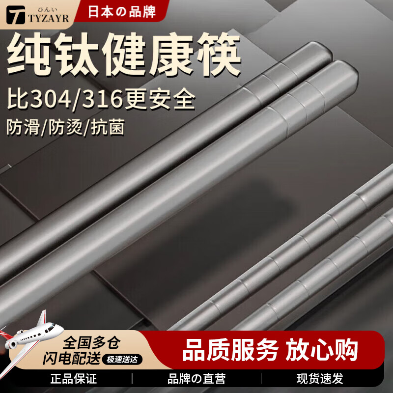 TYZAYR日本纯钛筷子家用防发霉滑烫户外便携隔热轻奢档餐具 【礼盒装】纯钛健康筷99.9% 5双