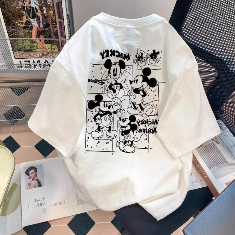 MODX欧货印花短袖恤女夏新款唐老鸭大码宽松百搭中长款半袖体恤上衣 黑色 唐老鸭前后印#短恤 M