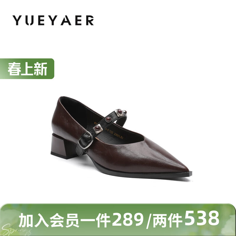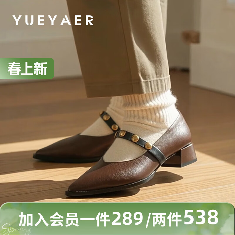 月芽儿法式尖头玛丽珍鞋女冬季季新款一字带百搭复古风浅口单鞋 棕色03S 34