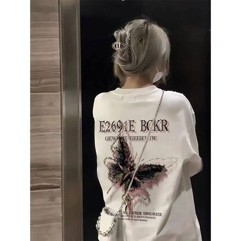 MODX棉美式洋派小众趣味重磅短袖恤女夏季宽松显瘦上衣男 白色 S
