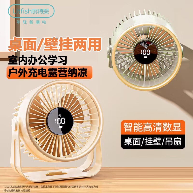 丽特斐静音大风力充电风扇桌面循环扇挂壁桌面两用扇Z05