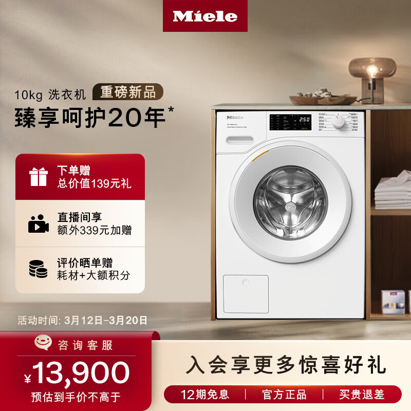 美诺(Miele)【新品】洗衣机蜂巢滚筒家用全自动大容量双泵劲洗欧洲进口智能配给10公斤 WSD382 C