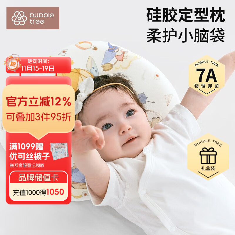 BUBBLE TREE婴儿定型枕0到6个月新生宝宝专用矫正头型硅胶枕头幼儿