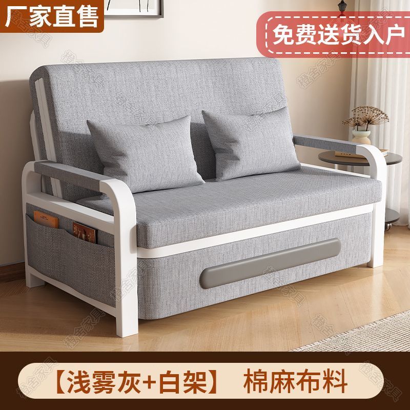 怀赛沙发床两用折叠沙发床客厅多功能伸缩床网红款可拆洗沙发床卧室床 【送抱枕】白架+浅雾灰【可拆洗】 【储物款】0.82米+海绵款【单人位】