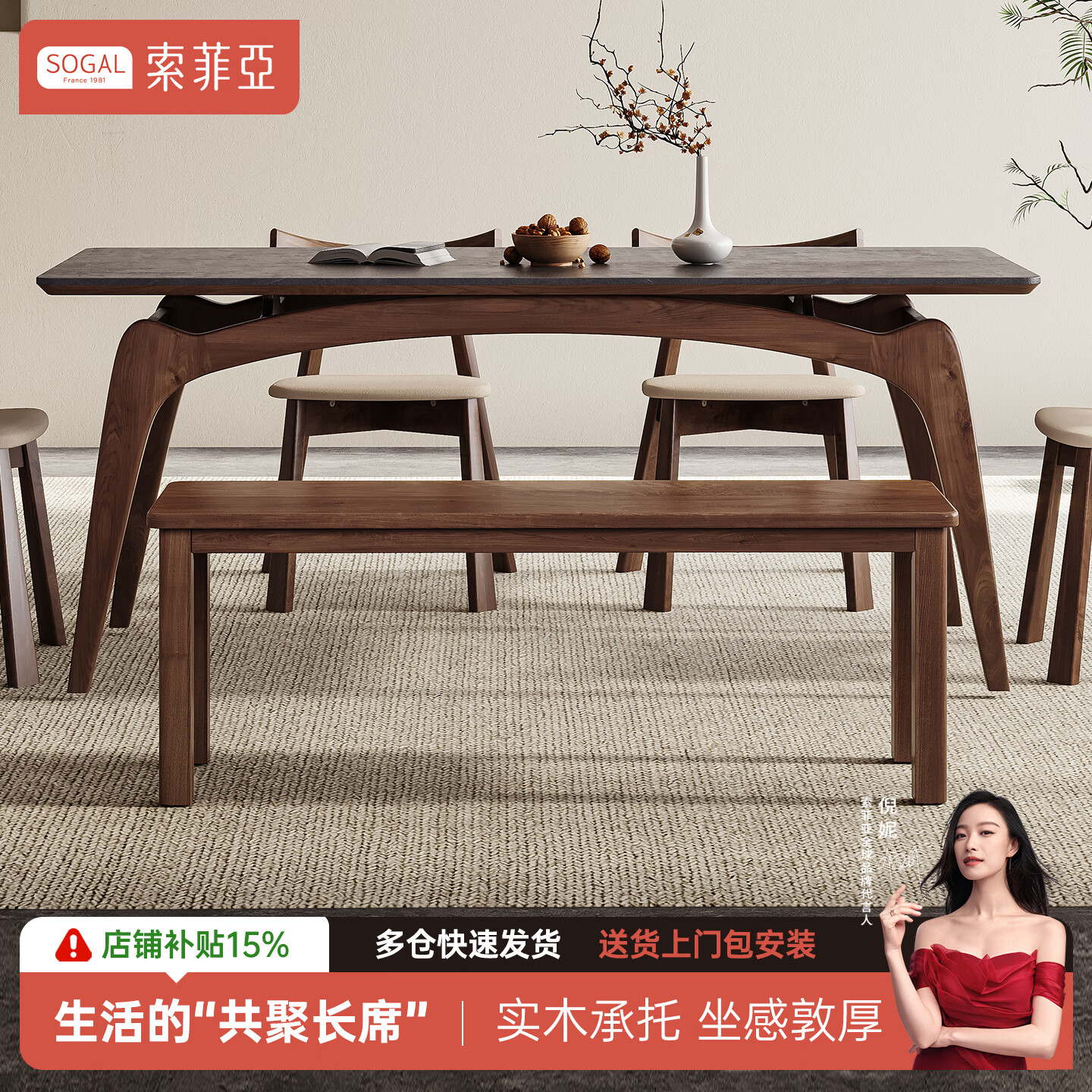 索菲亚凳子家用实木板凳长条凳餐桌凳书房办公凳入户换鞋凳多功能床尾凳 【进口FAS级橡胶木】胡桃木色1米长条凳 45cm