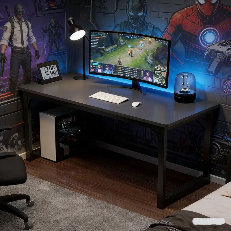 怀赛电脑桌家用钢木电竞桌写字台长条办公桌 单桌 加厚15MM【三角+斜 撑】灰色100CM
