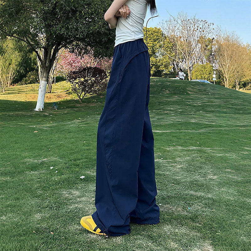 MODX藏青色弯刀速干裤女夏薄款175高个子加长裤子显瘦垂感阔腿休闲裤 藏青色 S 85至95斤【收藏加购优先发货】
