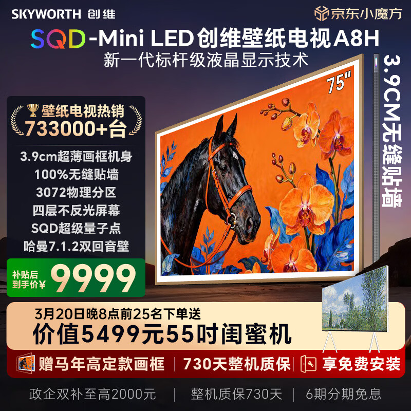 创维壁纸电视A8H 75英寸【送装一体-固定挂架】3072分区SQD Mini LED哈曼全景声3.9cm超薄平板国家补贴
