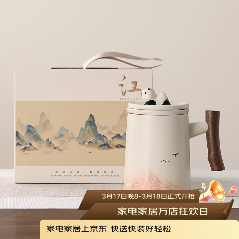 不拙茶水分离泡茶杯家用带盖喝水马克杯办公室高颜值大容量男女陶瓷杯 13【江山手提盒】熊猫渐变粉水杯