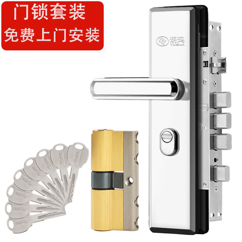 玥玛防盗门锁套装免费上门安装超C级锁芯通用型大门锁不锈钢门把手 镜面不锈钢24锁体套装免费安装