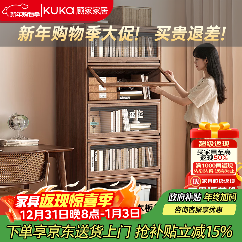 顾家家居实木书架落地置物架一体靠墙储物柜书房窄柜小书柜玄关柜 甄选橡胶木【送货入户包安装】胡桃色 60*30*180cm