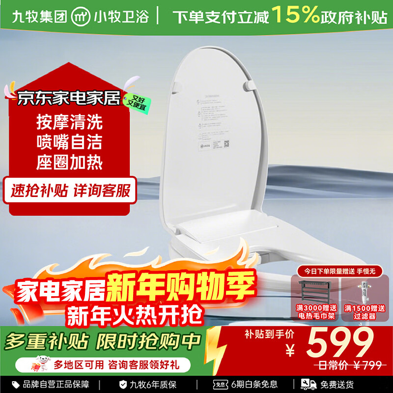 九牧(JOMOO)小牧卫浴智能马桶盖抗菌座圈即热加热臀部清洁全自动暖风烘干 X1基础款-按摩清洗 座圈加热
