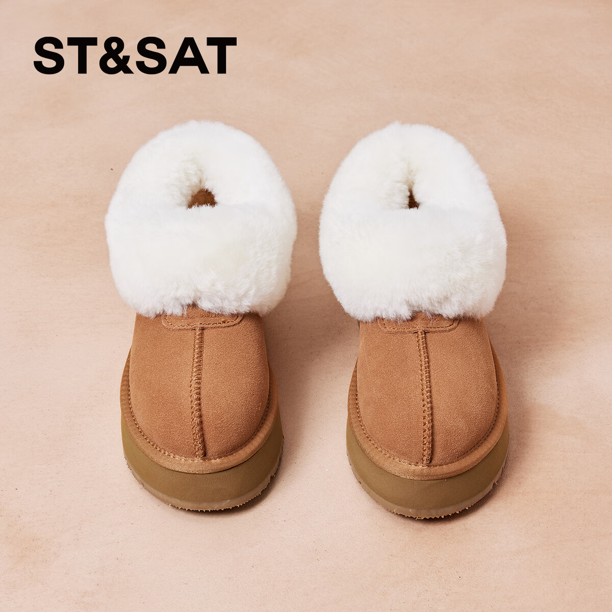 星期六厚底雪地靴女款2025新款秋冬季加绒加厚棉鞋巨好看保暖毛毛面包鞋 驼色 【加绒保暖】 38