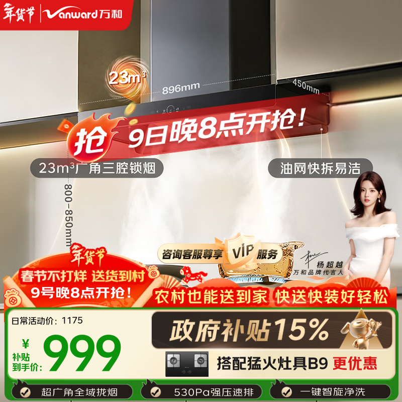 万和【超薄环翼V7X·深腔三吸】顶吸欧式抽排23风量家用大吸力免拆洗可配燃气灶活动立减20%油烟机