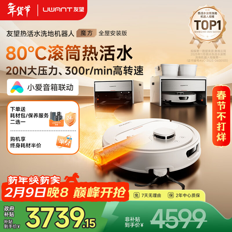 UWANT友望【重磅新品】魔方扫地机器人全屋安装版热活水滚筒洗地全能三合一扫拖一体基站自清洁