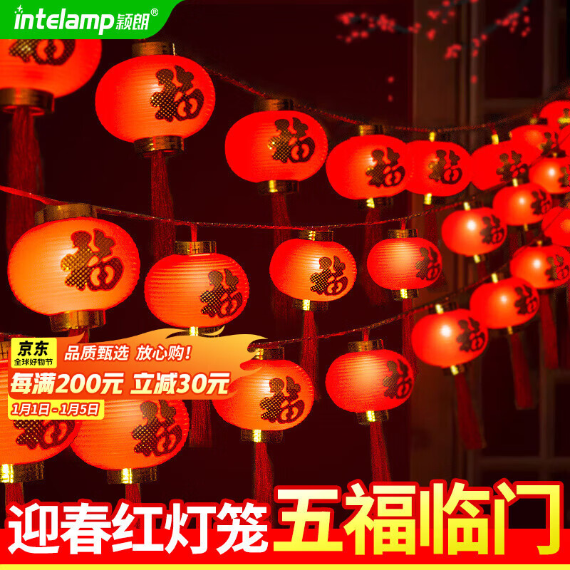 颖朗太阳能灯户外庭院灯农村家用红灯笼露营彩灯院子照明灯景观装饰灯 【五福临门-红灯笼】15米36灯 迎春接福-好运来!