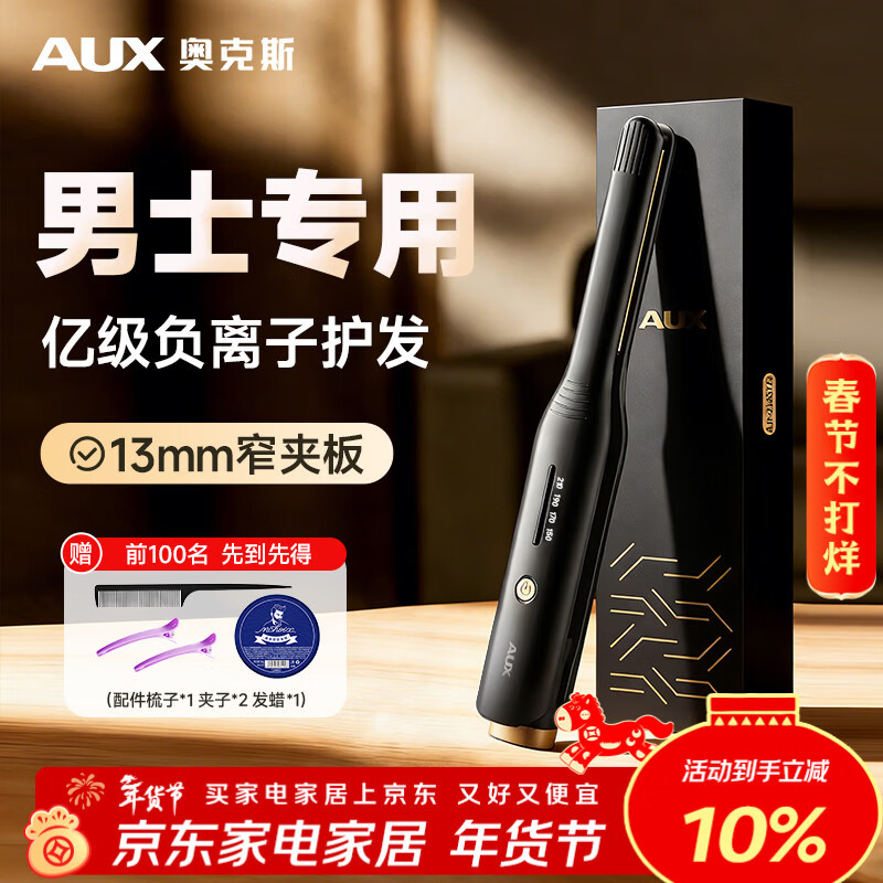 奥克斯(AUX)夹板男士蓬松烫发夹直卷发两用负离子不伤发防烫直板夹短发专用烫发神器13mm卷发棒男朋友礼物
