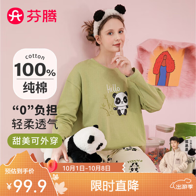 芬腾睡衣女早套头长袖家居服女棉套装女可外穿 草绿 L