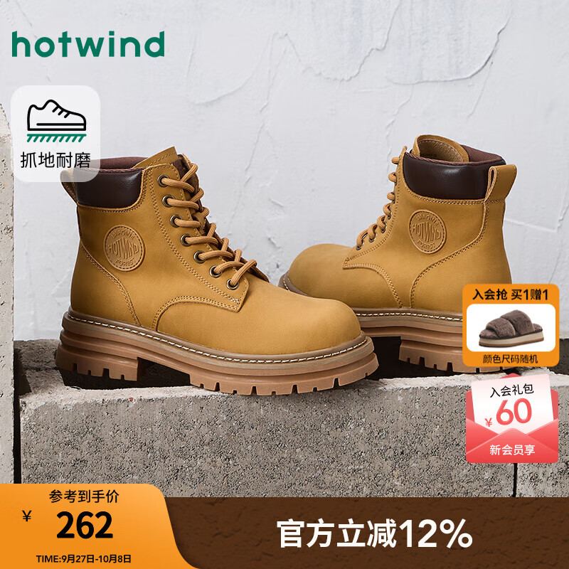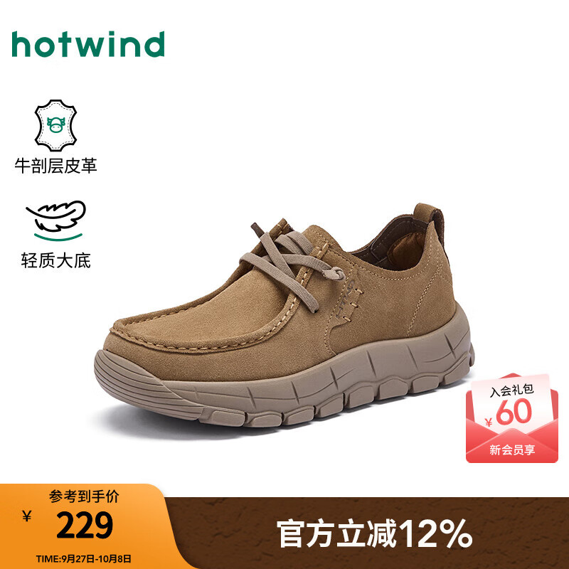 热风(Hotwind)男鞋2025年秋季新款男士时尚单鞋休闲皮鞋厚底日常户外鞋子 08杏色 40