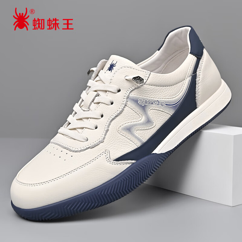 蜘蛛王男鞋潮流户外运动休闲撞色透气休闲德训板鞋 2A02F146 白-蓝 37