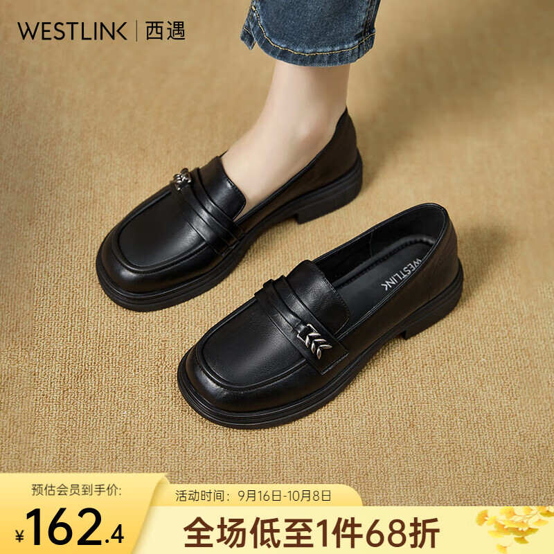 西遇黑色乐福鞋女2025新款秋季软底不累脚女鞋粗跟小皮鞋 黑色 38/9预售10月17日 38 (240)