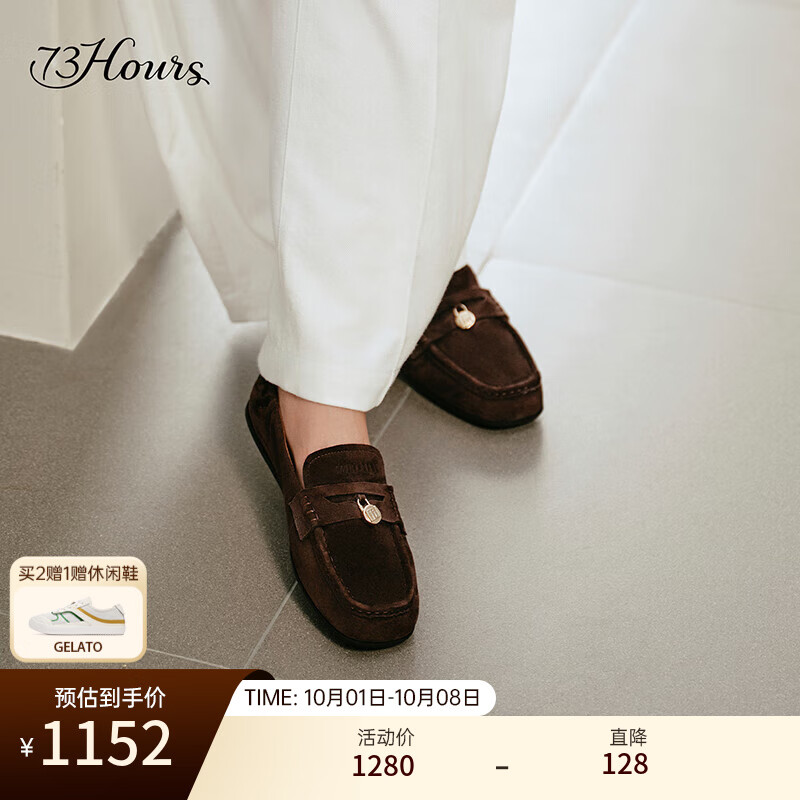 73Hours女鞋Pancake2025秋季新款老钱风羊皮乐福鞋女一脚蹬豆豆鞋 咖色 37