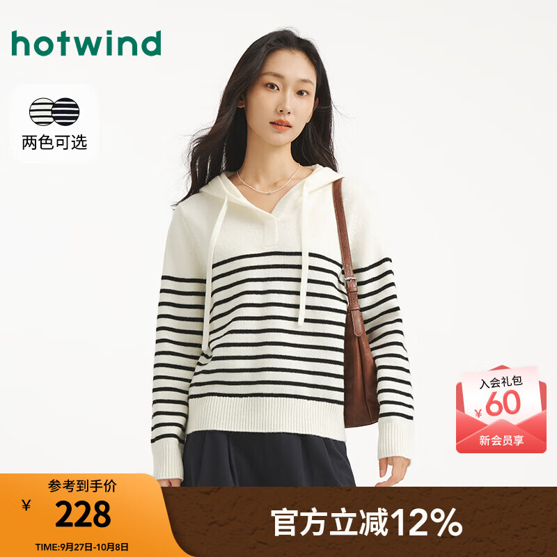 热风【商场同款】女士针织衫毛衣2025年秋新款连帽条纹宽松针织打底衫 88米黑 XL