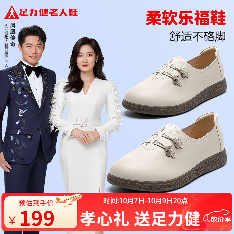 足力健老人鞋中老年女国风复古一脚蹬休闲乐福鞋百搭送礼 米白 39