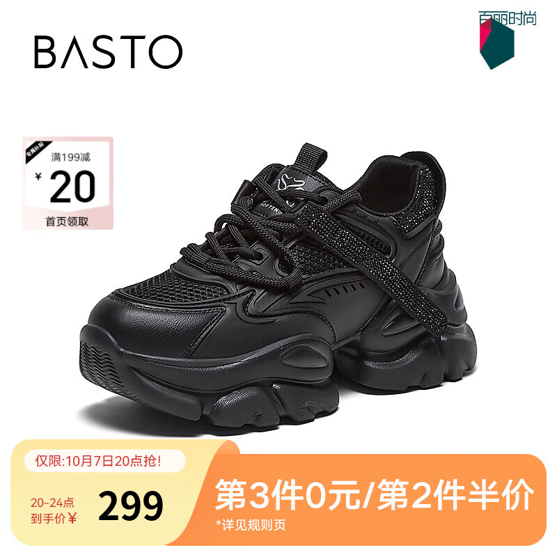 百思图2025秋季新款网面透气老爹鞋厚底增高女运动休闲鞋D3717CM5 黑色 37