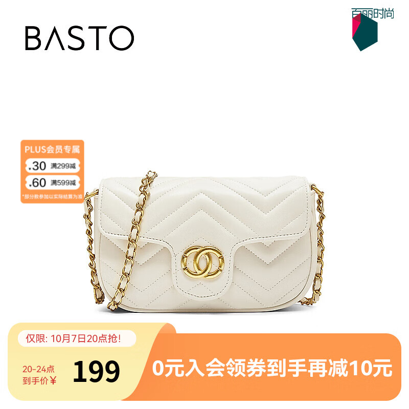 百思图2025冬季商场新款链条小方包时尚潮流单肩斜挎包女TY053DX5 米白色 F