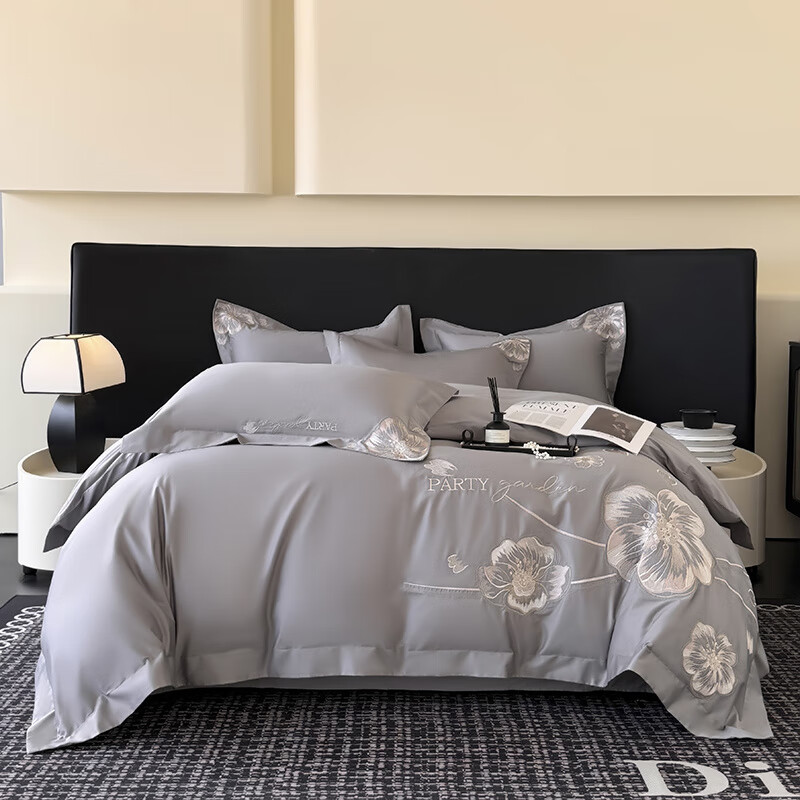 元族2025新款全棉长绒棉四件套刺绣高端轻奢床上用品-梦幻 雾灰 床单款 2.0m四件套