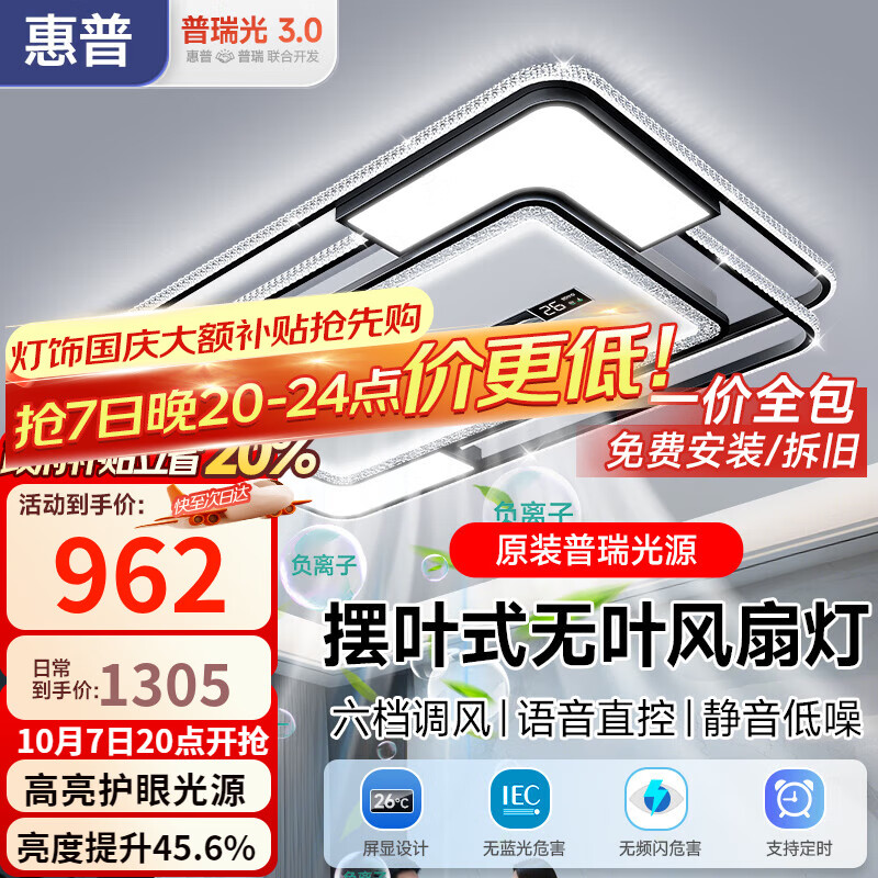 惠普客厅风扇灯一体大灯吸顶灯2025年新款现代简约卧室无叶大风静音灯 200W 35㎡内适用 -110cm-离线语音