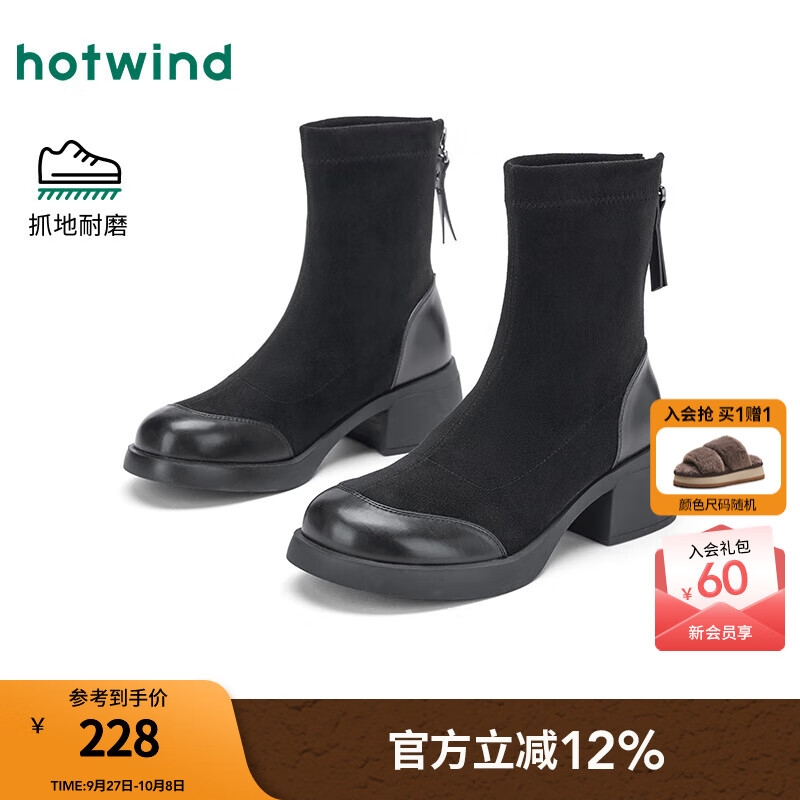 热风【商场同款】时装靴2025年冬新款显瘦百搭瘦瘦靴粗跟增高休闲女靴 01黑色 39