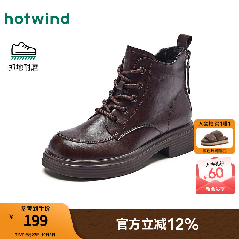 热风黑色马丁靴女款2025年冬季新款厚底休闲靴子百搭短靴粗跟女鞋 02棕色 37