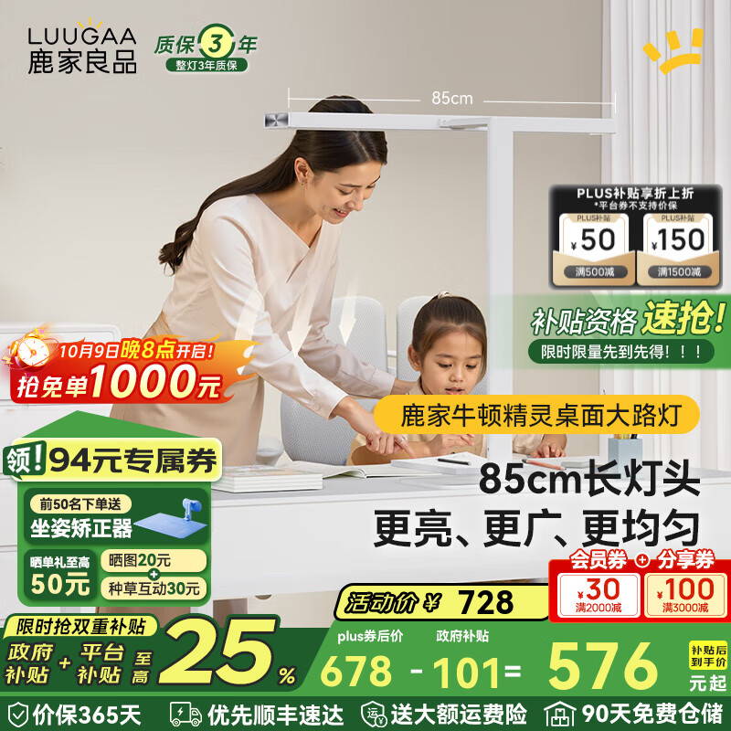鹿家良品(LUUGAA)牛顿精灵桌面大路灯全光谱护眼台灯学习灯卧室灯书桌阅读灯床头灯 【荐】全光谱长灯头85cm上下双发光48W