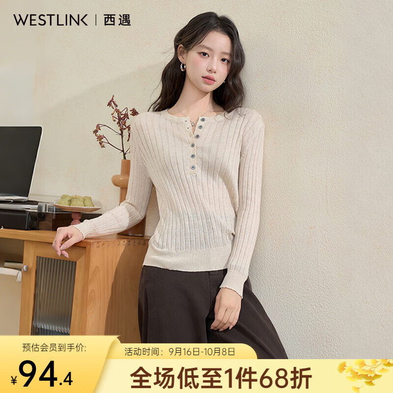 西遇(Westlink)修身长袖针织衫女秋季新款软糯显瘦内搭打底衫圆领毛衣 卡其色 (预售15天) M (160)