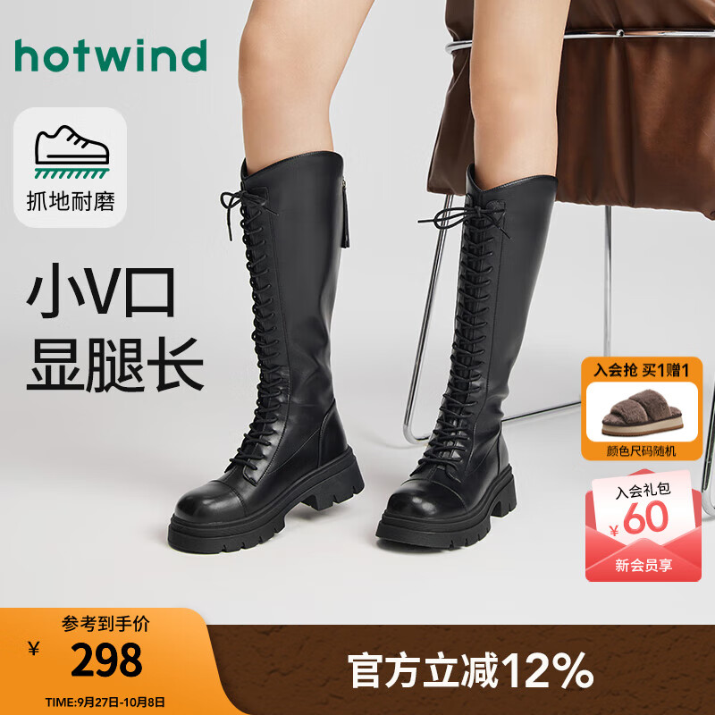 热风厚底绑带长筒靴女2025年冬季新款黑色休闲骑士靴增高长靴子女 01黑色 37