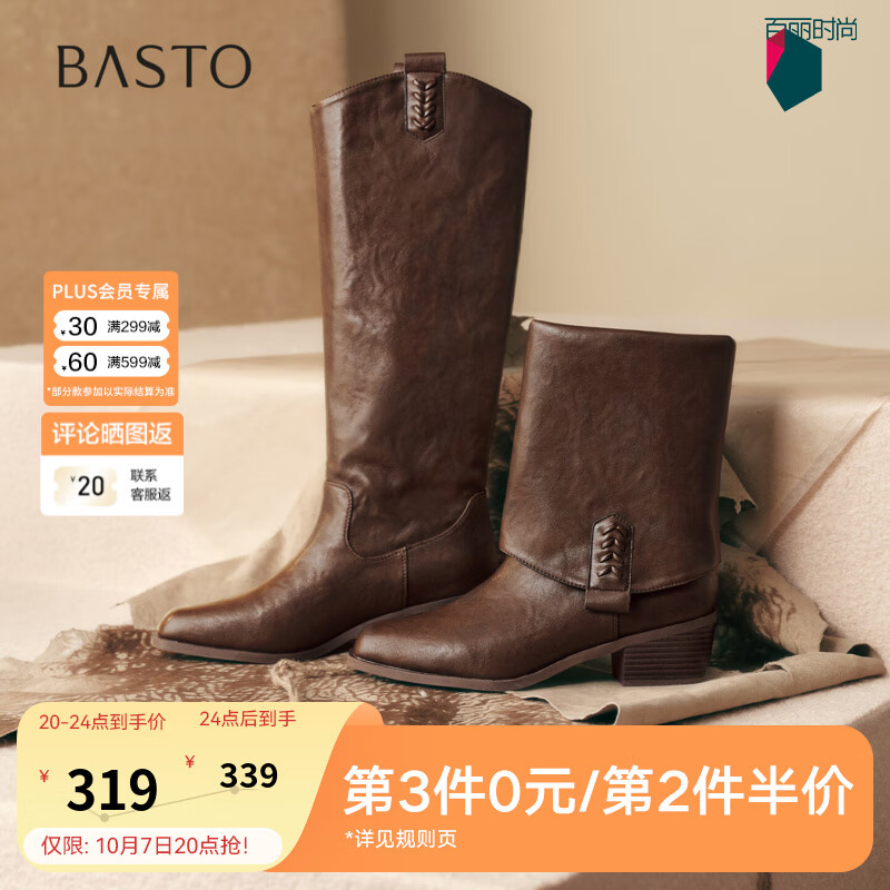 百思图2025冬季新款潮流裤管靴粗腿显瘦尖头粗跟女短靴E5177DD5 棕色 36