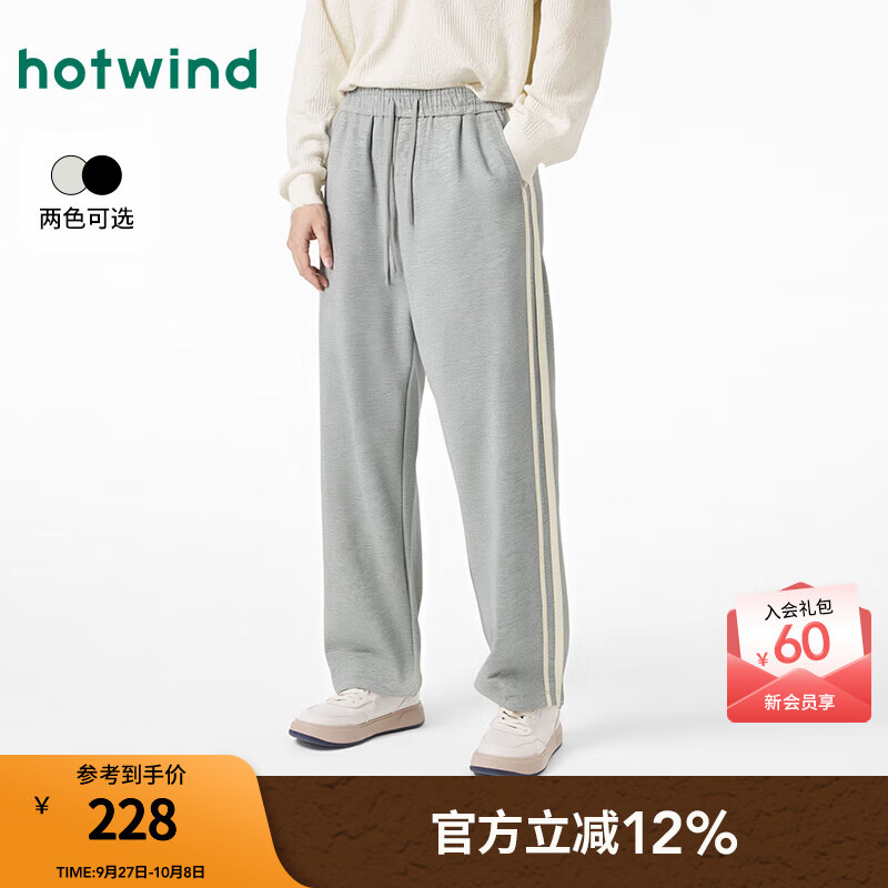 热风【商场同款】男士直筒卫裤2025年秋新款松紧腰宽松休闲舒适长裤 09灰色 L