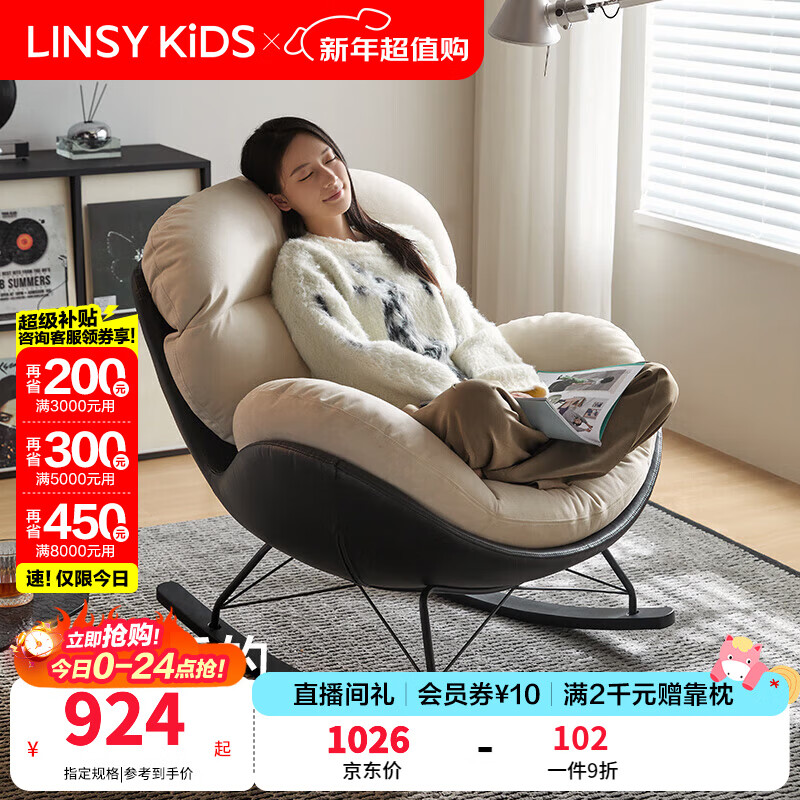 LINSY KIDS林氏家居单人位沙发休闲椅客厅阳台复古风蛋壳摇摇椅阅读TDY236 【蛋壳摇椅|白+绿】碳素钢框架【快递速达】