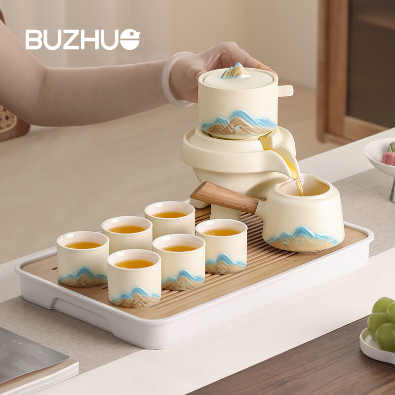 不拙年轻人茶具套装2026新款高颜值功夫茶具一整套高档自动懒人泡茶壶 1【泡茶新手 闭眼入】米黄色意景山自动茶具10入
