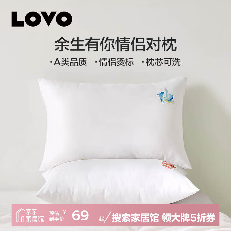 LOVO罗莱生活旗下品牌 枕头纤维情侣双人对柔软回弹送礼枕 余生有你情侣对枕