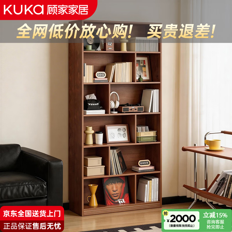 顾家家居书架置物架落地整墙柜子展示柜家用书柜一体靠墙客厅储物柜格子柜 【6层11格】胡桃色100*30*196cm 【送货上门免费安装】