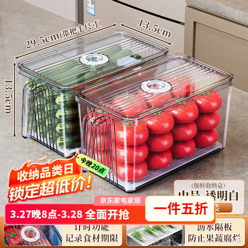 纳份爱冰箱收纳盒整理盒保鲜盒食品级食物沥水储物盒子冷冻室专用神器 普通款【中号-2个装】赠沥水板