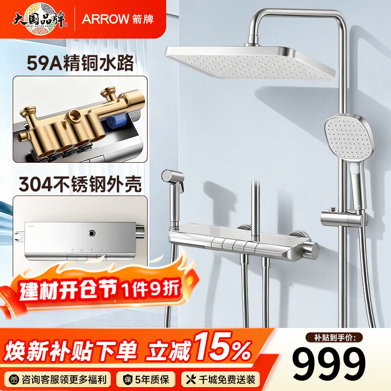 箭牌【焕新补贴】花洒家用淋浴套装卫浴洗澡浴室增压银色置物琴键花洒 34144铜水路|350mm大置物平台|钢琴按键