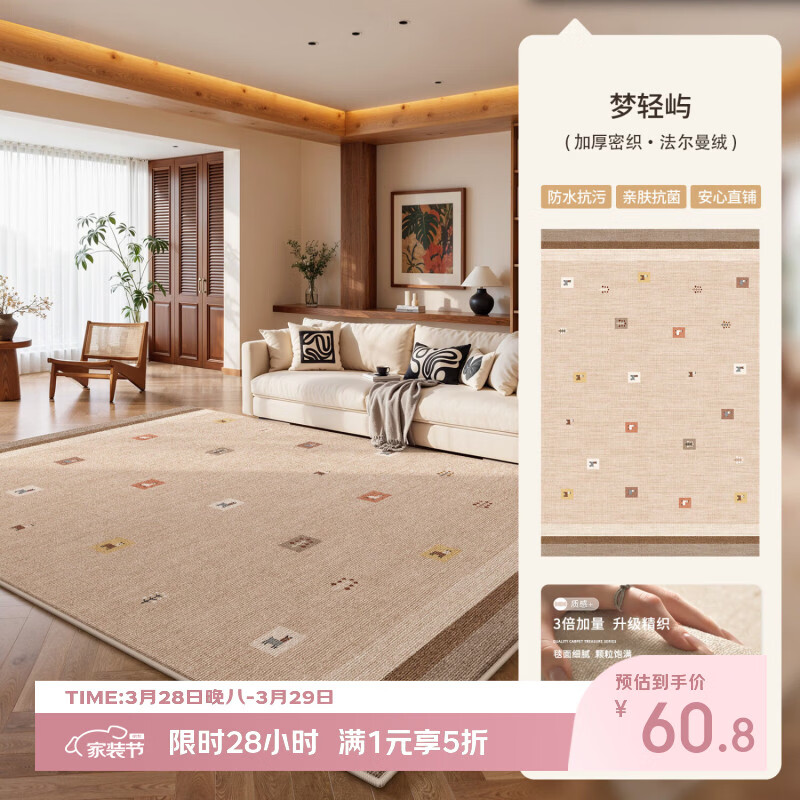 著忆地毯客厅2026新款卧室床边免打理隔音地垫中古风免洗可擦防水防污 圈绒加厚-梦轻屿 80*160cm【NEW新升级】